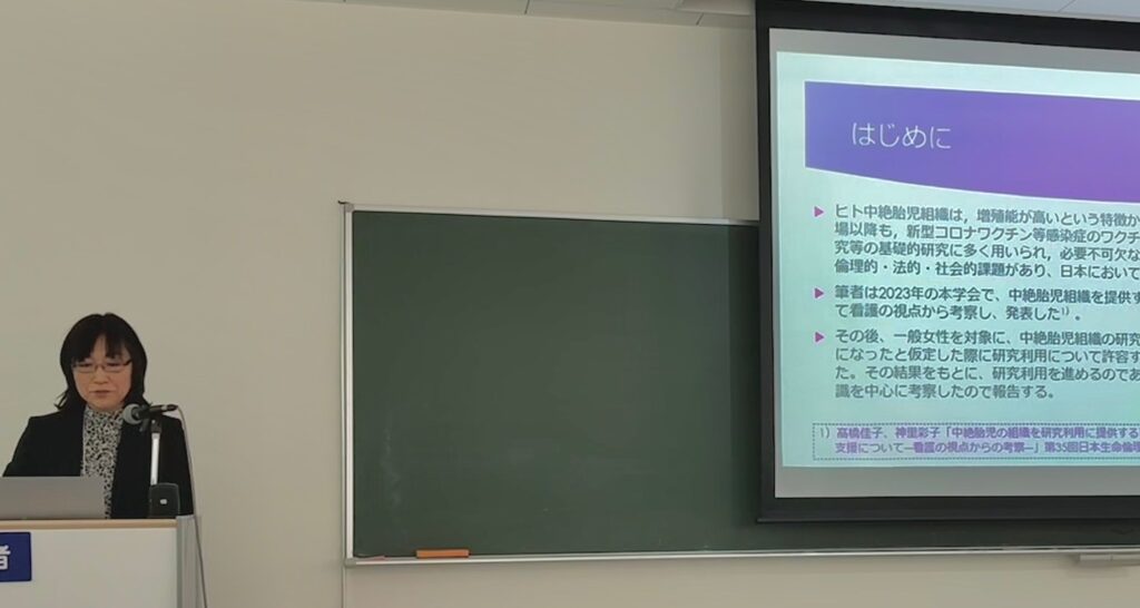 第37回日本生命倫理学会年次大会@盛岡にて、「日本の一般女性におけるヒト中絶胎児組織の研究利用に関する意識についての考察―中絶についての認識や生活背景による違いから―」を報告しました。